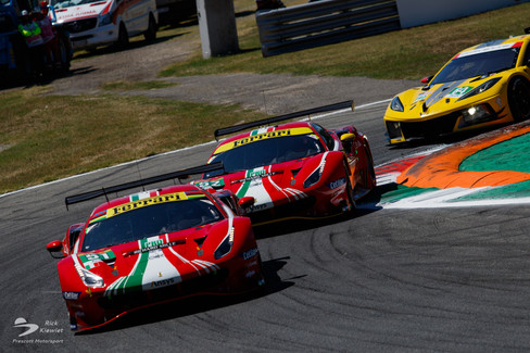 Not long after the restart, with little over three hours on the clock, Alex Brundle aquaplaned of the track to spark yet another red flag. With about 2 hours left, the race restarted yet again, to make up for the previous hours in full. Great battles emerged everywhere on track, most eye-catching the battle for the lead in GT Pro. James Calado in the #51 AF Corse Ferrari led, but had the #92 Porsche literally under his rear wing. The #52 Ferrari was only a second behind. Calado held on to the lead however, in the end being only 0.523 seconds ahead of the Porsche.